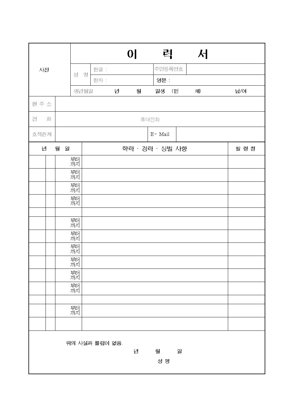 건강진단서/ 공공 의료기관 발행, 가족관계증명서/ 읍면동사무소 발행